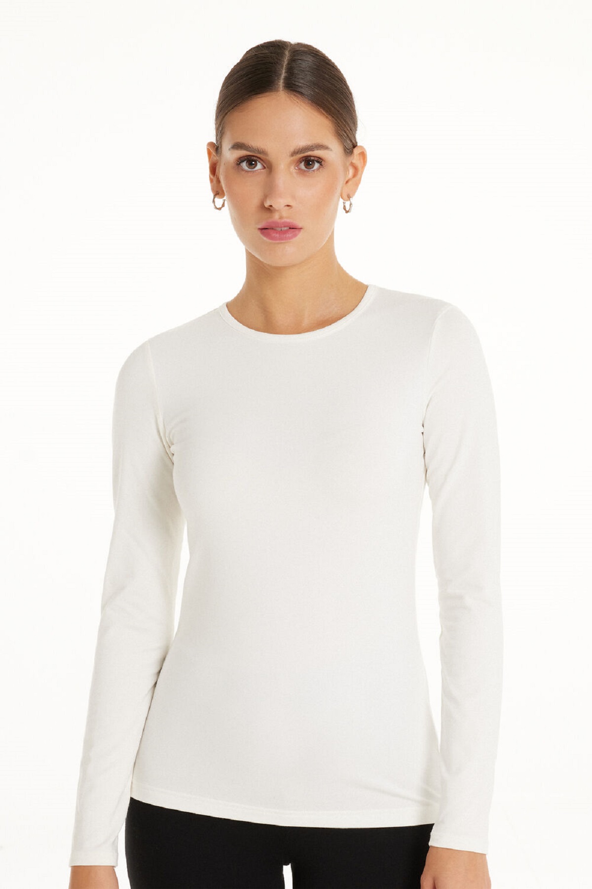 4Camiseta con Cuello Redondo de Algodón y Modal Térmico blanca