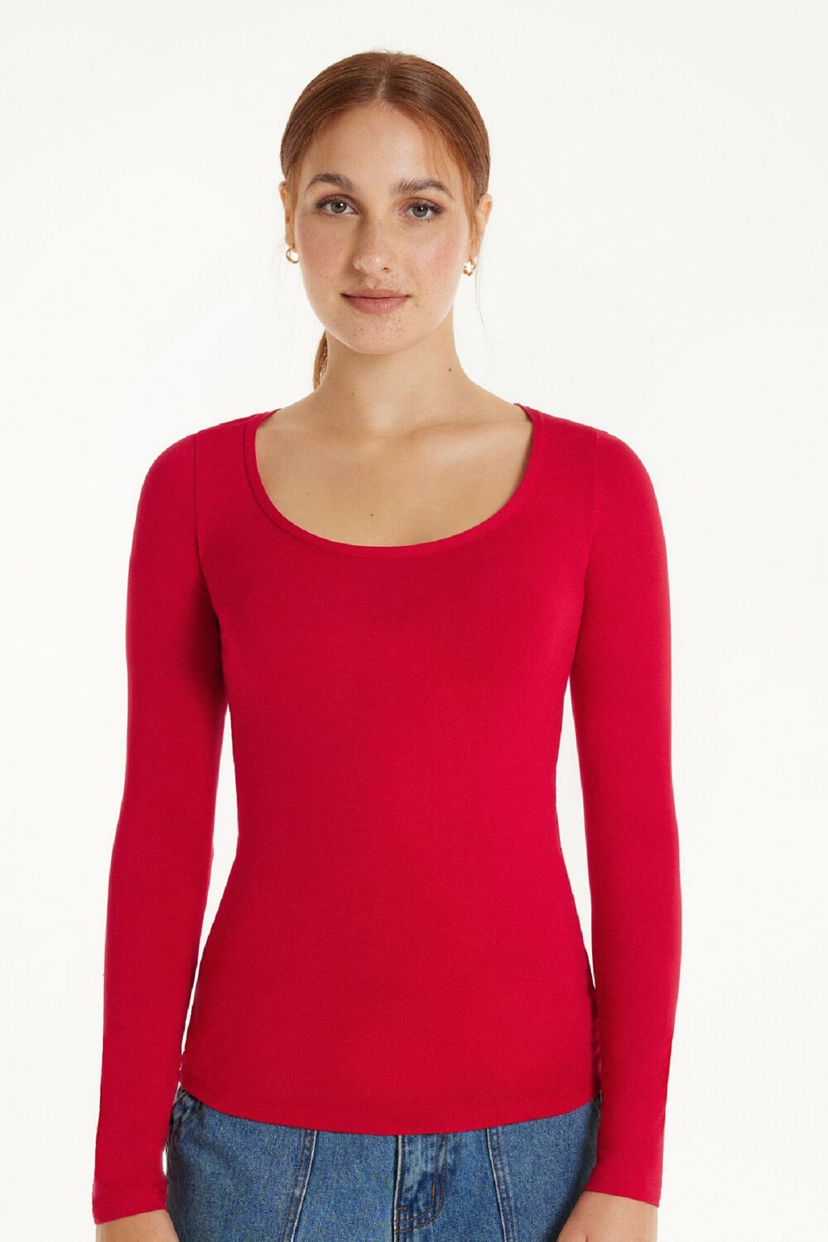 5Tezenis: Camiseta Manga Larga Escote Redondo Amplio Viscosa roja