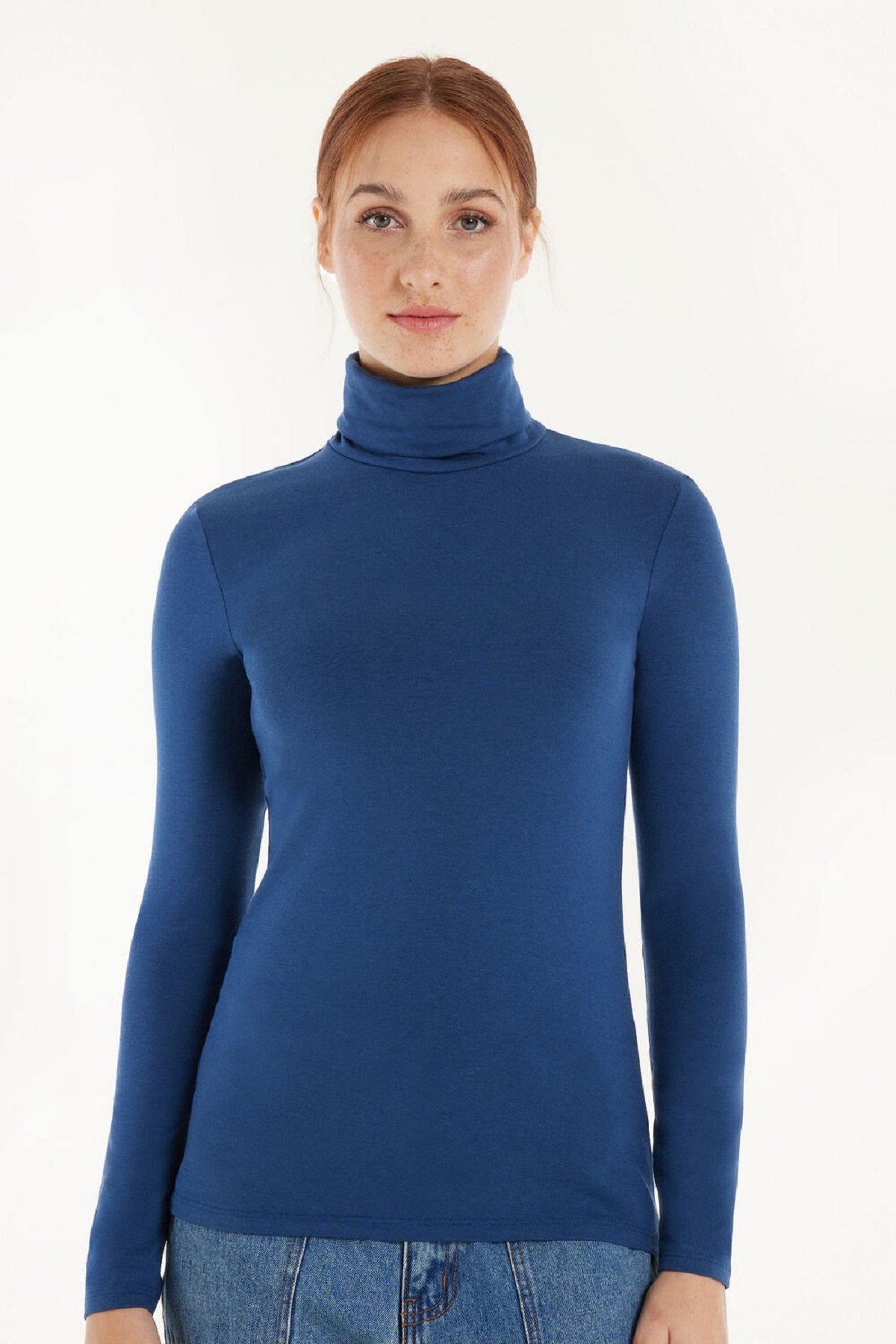 8Camiseta con Cuello Alto de Algodón y Modal Térmico azul