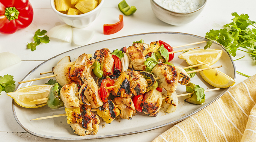 Para la marinada, el limón proporciona un toque cítrico refrescante que realza los sabores del pollo y las verduras, mientras que el aceite de oliva, la miel, el ajo, el pimentón y el comino crean una combinación de sabores que realza el plato. No olvides los palitos para brochetas, es importante remojarlos antes de ensartar los ingredientes para evitar que se quemen durante la cocción.