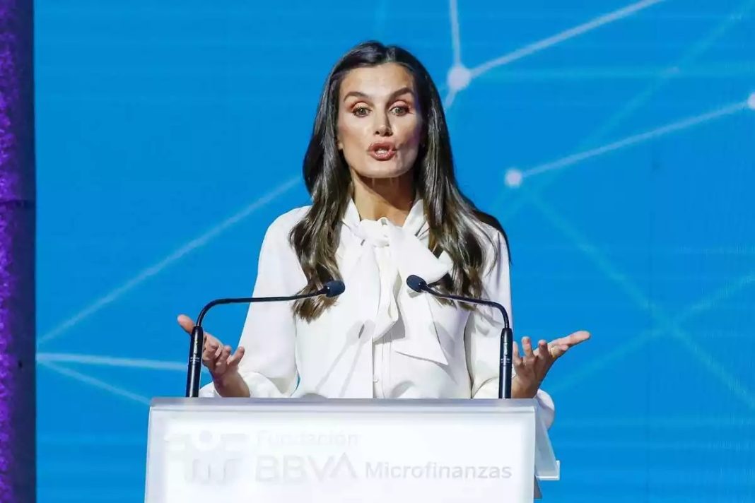 Letizia ha sido sorprendida por las cámaras retocándose el maquillaje en público, una imagen que ya ha recorrido el mundo. En medio de un acto organizado por la Fundación Microfinanzas BBVA, la esposa de Felipe VI fue captada retocándose el brillo de labios sacando su lado más coqueto. La madre de Leonor y Sofía se encontraba allí presidiendo un evento sobre la innovación como clave para la pobreza digital. El lema era “Tecnología para cerrar brechas. Creando sin límites”.