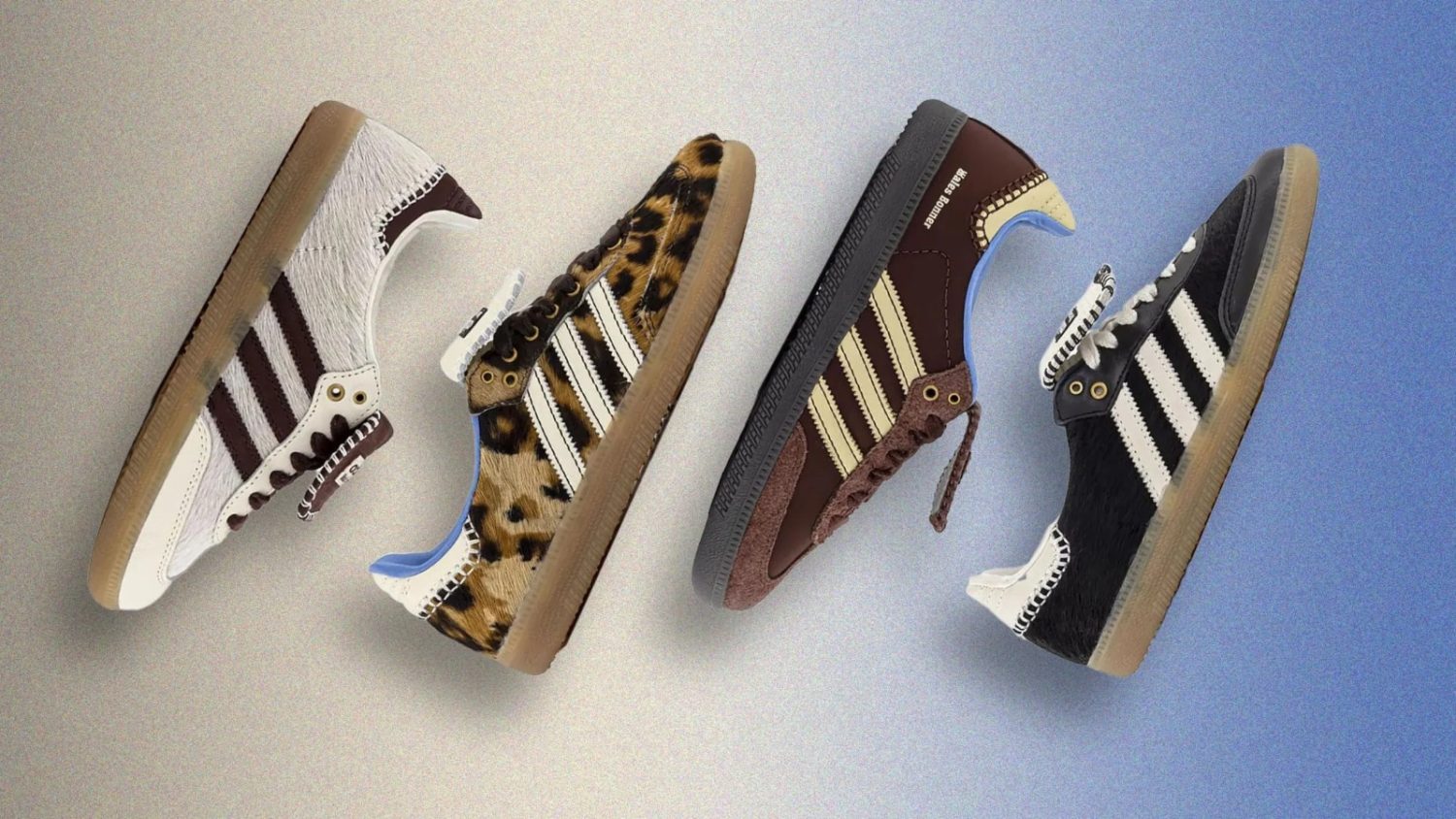 Los más discretos encuentran su modelo ideal en las Samba de color negro (Adidas Samba Pony Tonal Low x Wales Bonner), con algunos detalles en blanco, que podrían confundirse con el modelo clásico que muchos hombres llevan en otoño. Esta versión, además, tiene un upper de pelo cepillados y unos exclusivos bordados a mano blancos que resaltan en la parte de la lengüeta. La joya de la Corona de la colección es la zapatilla de estampado de leopardo (Adidas Samba Pony Leo Low x Wales Bonner). Destaca porque tiene el exterior y el interior cubierto de pelo, con una suela interna en azul añil.