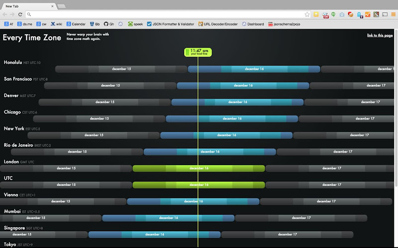 Esta es una extensión de Google Chrome durante el tiempo y es muy útil para los viajeros que realizan largos viajes entre distintos husos horarios. EveryTime Zone te le brinda información de detalle sobre la hora local en cualquier lugar, así como el tiempo en formato UTC. Esto significa que el reloj se actualiza automáticamente a medida que la hora local en tu sitio de origen y destino se modifica.