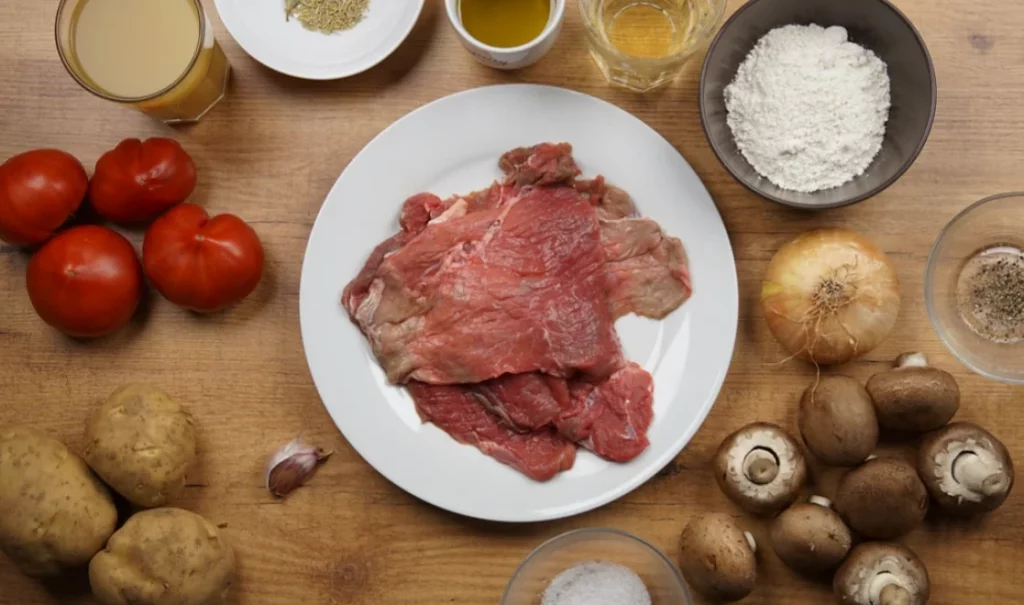 En esta etapa, los humildes champiñones toman protagonismo. Límpialos a conciencia y lamínalos para prepararlos para su integración en el guiso. Mientras tanto, los filetes de ternera, esos deliciosos protagonistas, se convierten en trozos sazonados, pasados por harina y dorados en una sartén con abundante aceite de oliva virgen extra. La jugosidad que obtendrás al freírlos será el secreto para un plato inolvidable.