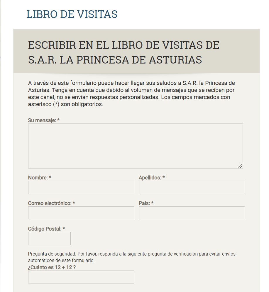 Si tú también quieres dejar un mensaje para la Princesa Leonor, lo puedes hacer a través de este enlace. Después, solo tienes que rellenar un formulario donde deberás dejar datos como el nombre, los apellidos, la dirección de corre electrónico, tu país de procedencia y el código postal. Tras cumplimentar todas las casillas, abajo encontrarás un recuadro donde podrás colocar tu mensaje para la heredera. Antes de enviarlo, por su parte, deberás responder la pregunta de seguridad. De esta forma, la página comprueba que el mensaje no proviene de un robot. Cuando se envíe, ya puedes esperar la respuesta de la Princesa o de su equipo desde la Zarzuela.