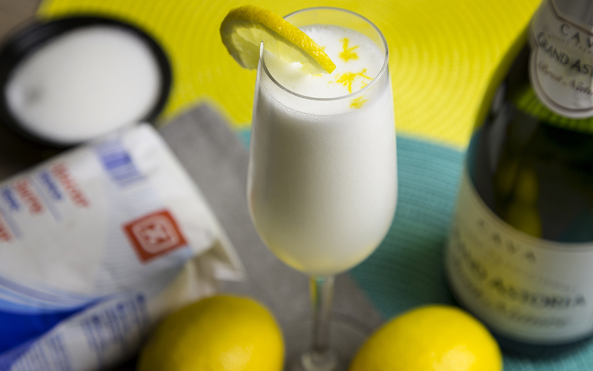 Mezcla el zumo y la ralladura de limón con el cava y la mezcla de azúcar enfriada.
