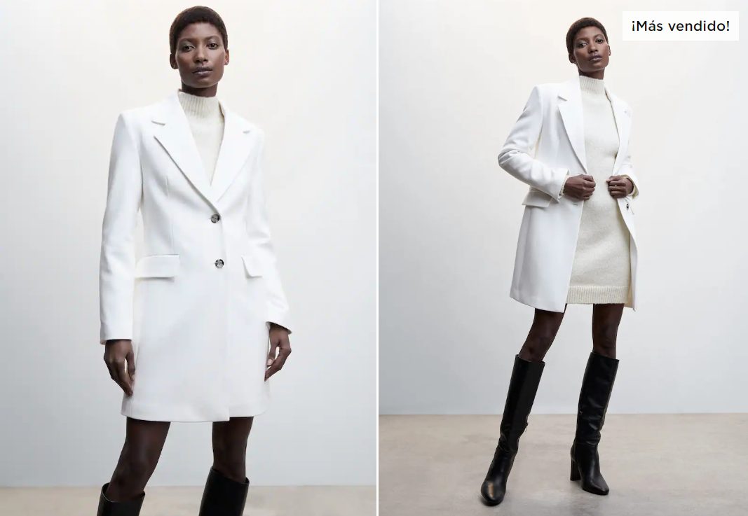 Los abrigos son las prendas más buscadas durante esta temporada debido a la necesidad de luchar contra el frío del invierno. Si estás buscando una nueva pieza que incluir en tu armario, pero no deseas invertir demasiado, nada mejor que echar un vistazo por los descuentos de Mango Outlet. En ese caso, destaca este abrigo entallado, disponible en color blanco, que llama la atención por su cuello de solapas, sus botones en contraste, así como por sus bolsillos. En cuanto a su precio, ahora lo puedes conseguir por tan solo 39,99 euros cuando antes costaba 69,99. Casi a mitad de precio.