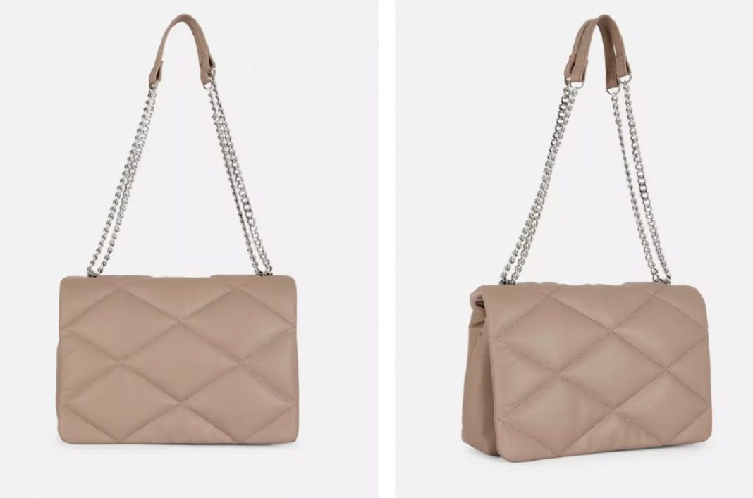 Este bolso de Primark es prácticamente idéntico a uno de Prada. De hecho, podríamos decir que es su versión low cost. Dispone de un cierre con solapa e imán, con un compartimento interior de gran tamaño. Lleva asas idénticas a las que Prada, combinando un tejido sintético con cadenas. Tiene tres opciones para lucirlo: colgado al hombro, extendiendo las cadenas o llevándolo en forma de bandolera. De cualquiera de las maneras, es un modelo que nos tiene locas. Su precio es 15 euros.