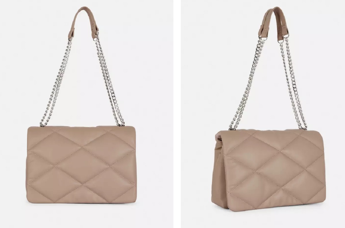 Este bolso de Primark es prácticamente idéntico a uno de Prada. De hecho, podríamos decir que es su versión low cost. Dispone de un cierre con solapa e imán, con un compartimento interior de gran tamaño. Lleva asas idénticas a las que Prada, combinando un tejido sintético con cadenas. Tiene tres opciones para lucirlo: colgado al hombro, extendiendo las cadenas o llevándolo en forma de bandolera. De cualquiera de las maneras, es un modelo que nos tiene locas. Su precio es 15 euros.