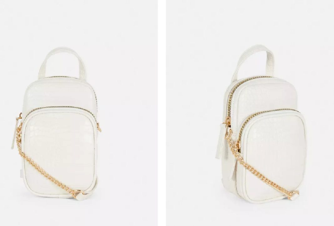 Cerramos esta exquisita selección de bolsos de Primark con una opción que no puede ser más acertada: el bolso para teléfono en piel de cocodrilo sintética. Es un bolso de mano bonito y pequeño que te permite llevar lo mínimo e indispensable. Pese a ello, no debemos conformarnos con piezas con diseños feos o que no representen realmente cómo nos sentimos por dentro. El estilo se ve reflejado en los pequeños detalles, como escoger un color y una textura sofisticados incluso en tu bolso para el teléfono. Primark parece tenerlo todo bajo control para que, al vernos, el resto piense que somos esa chica tendencia que tiene que seguir como ejemplo a toda costa. Su precio es 7 euros.