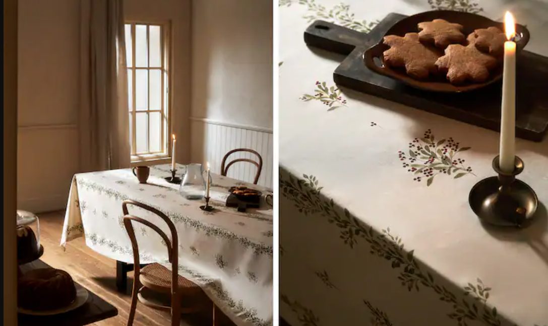 1Mantel de algodón con ramas de Navidad, el favorito de Zara Home