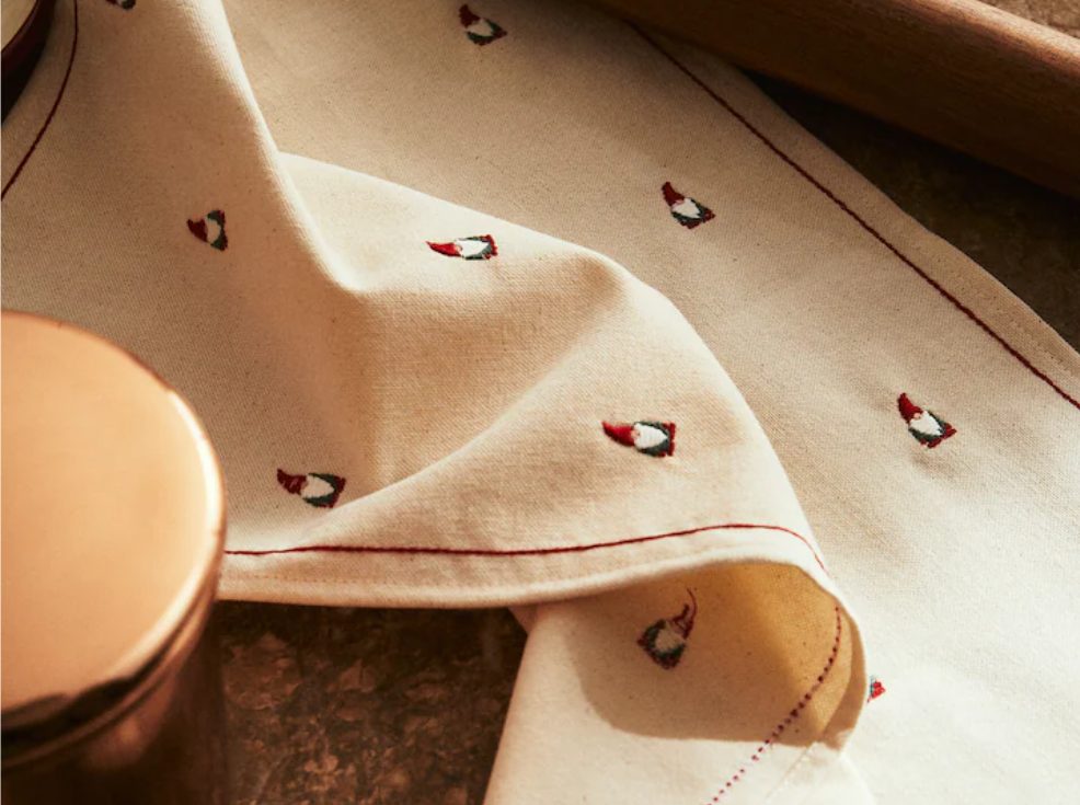 Ahora que conoces los manteles más sofisticados de Zara Home para poner tu mesa navideña más bonita que nunca, también debes descubrir otros productos que no dejarán a nadie indiferente. Un buen ejemplo lo tienes en este paño de cocina, que destaca gracias a su tono de base neutro, pero aún más por su bordado en forma de pequeños gnomos. Se trata de un artículo de carácter festivo y divertido, donde reinan los tonos verde y rojo, con el que te puedes hacer ya en la tienda por tan solo 7,99 euros. No lo querrás dejar escapar.