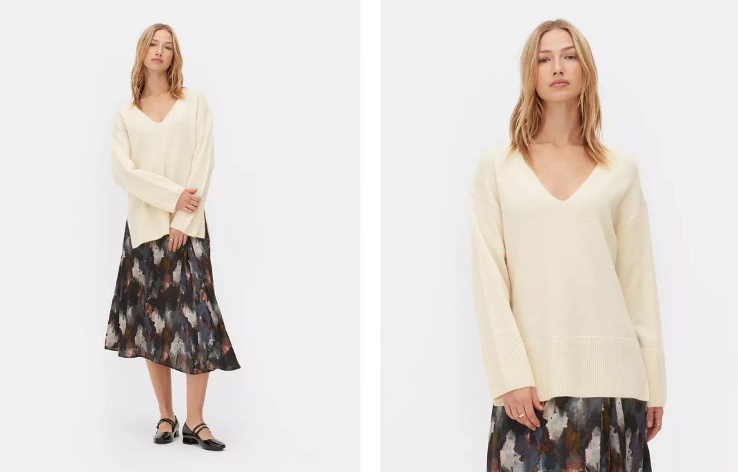 Parece que los tonos neutros se han convertido en los reyes de las novedades de Primark. Así lo demuestran desde la tienda una vez más a través de opciones como este bonito jersey de color marfil. De diseño oversize, cómodo y muy funcional, destaca por su aspecto relajado, así como por su profundo escote en forma de pico, muy favorecedor. Ideal para combinar con cualquiera de las prendas que ya tengas en tu armario, te puedes hacer con él por tan solo 26 euros. Además, lo tienes disponible en otros tonos neutros y oscuros, adaptándose a todas tus necesidades.