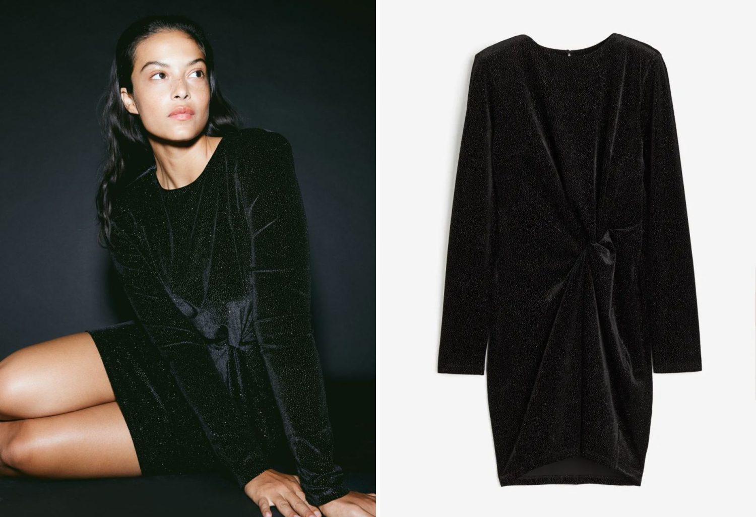 El modelo entallado, con hombreras finas, mangas largas y un detalle anudado en un lateral de la cintura, crea un sutil efecto drapeado que realza tu silueta con estilo. Este vestido negro de H&M es la elección perfecta para resolver todos tus looks durante el mes de diciembre, combinando elegancia, comodidad y un precio irresistible.