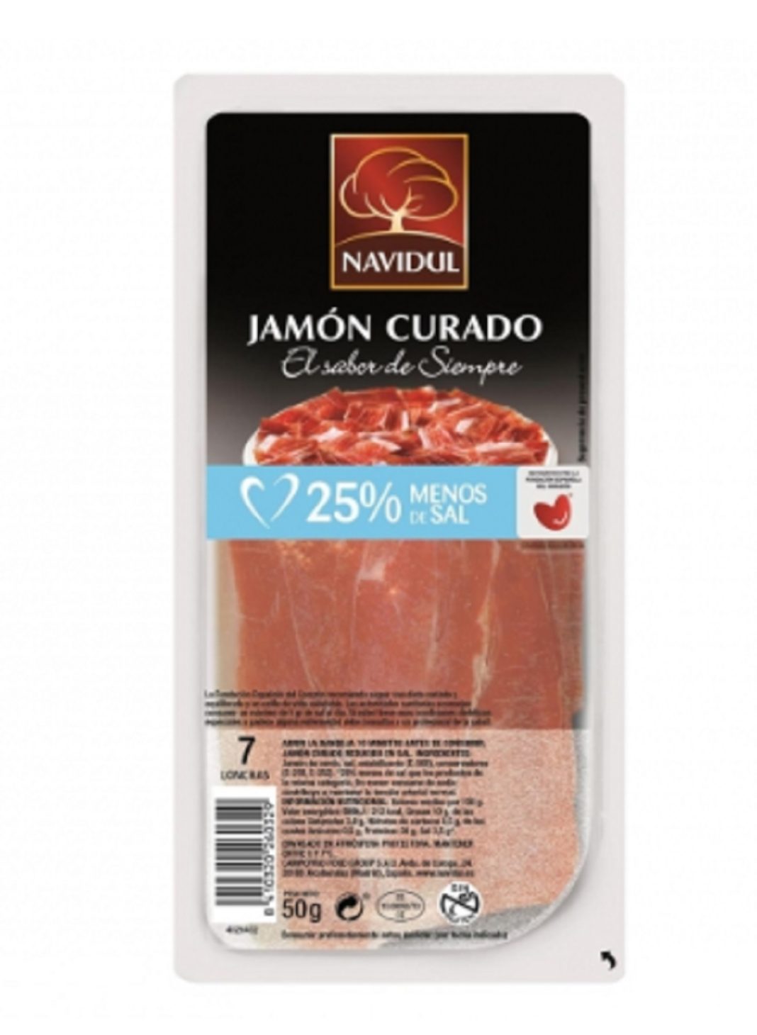 4Jamón curado 25% menos de sal Navidul sin gluten 50 g
