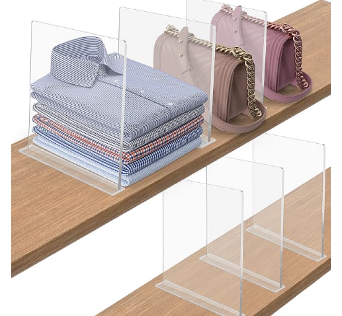Amazon propone separados de estantes elegantes y funcionales. Otorgan un plus estético al armario y mantienen en orden las prendas. La transparencia del acrílico evita que el armario parezca abarrotado y facilita identificar diferentes secciones dentro del mismo. Se instala de una manera muy sencilla, convirtiéndolo en una opción práctica y estilizada para la organización de la ropa. Aunque el primer uso en el que hemos pensado es la ropa, también permite que guardes bolsos, toallas, zapatos, bolsas y hasta libros. Es un espacio en tu armario que puedes organizar como quieras y te resulte cómodo. Su precio es 36,99 euros.