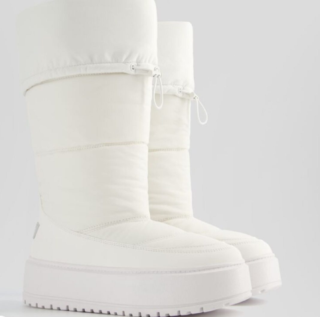 Bershka toca el cielo con sus botas acolchadas, estupendas para combinar con los abrigos y prendas de invierno que tengas en casa. Un efecto único con un tirador ajustable que termina de acomodar este diseño en la pierna para un mayor confort. Presenta un diseño de punta redondeada, con costuras en los bordes, conservando la forma de piel para otorgar comodidad en cada caminata. Disponen de una plataforma de 4 cm que aporta altura a tus outfits y te convierten en una chica más estilizada. Son repelentes al agua, logrando que brilles, aún en los días de lluvia. Su precio es 55,99 euros.