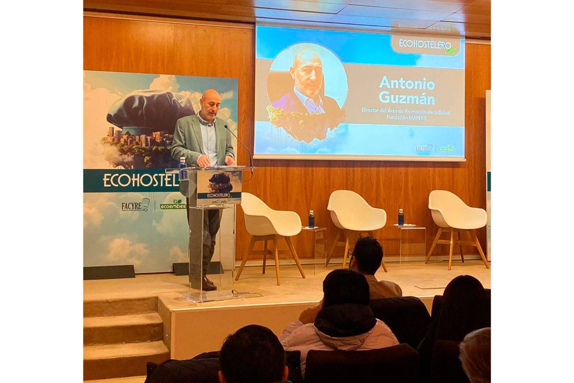 La sesión ha comenzado con la bienvenida de la mano de Diego Olmedilla, Director General de FACYRE, y la apertura del anfitrión, Antonio Guzmán, director del Área Promoción de la Salud de la Fundación MAPFRE. A continuación, los asistentes han podido conocer de primera mano el proyecto Ecohosteleros con Clàudia Ojer, especialista de Ecoembes.