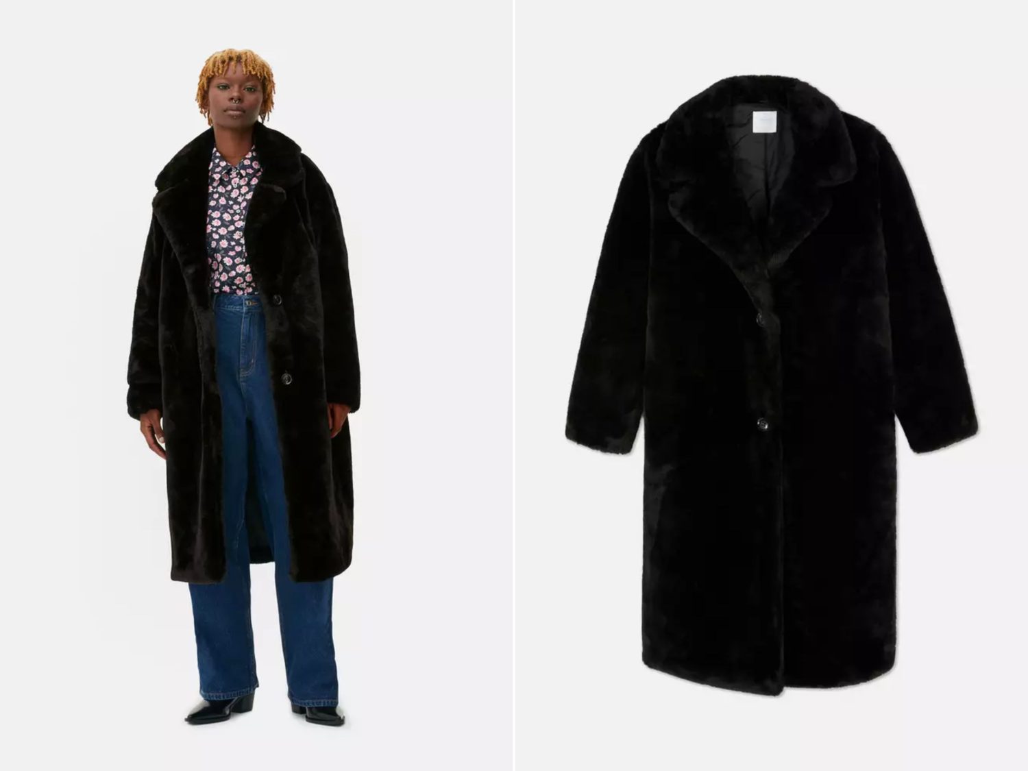 3Abrigo largo de pelo sintético de Primark: Clásico invernal en negro elegante