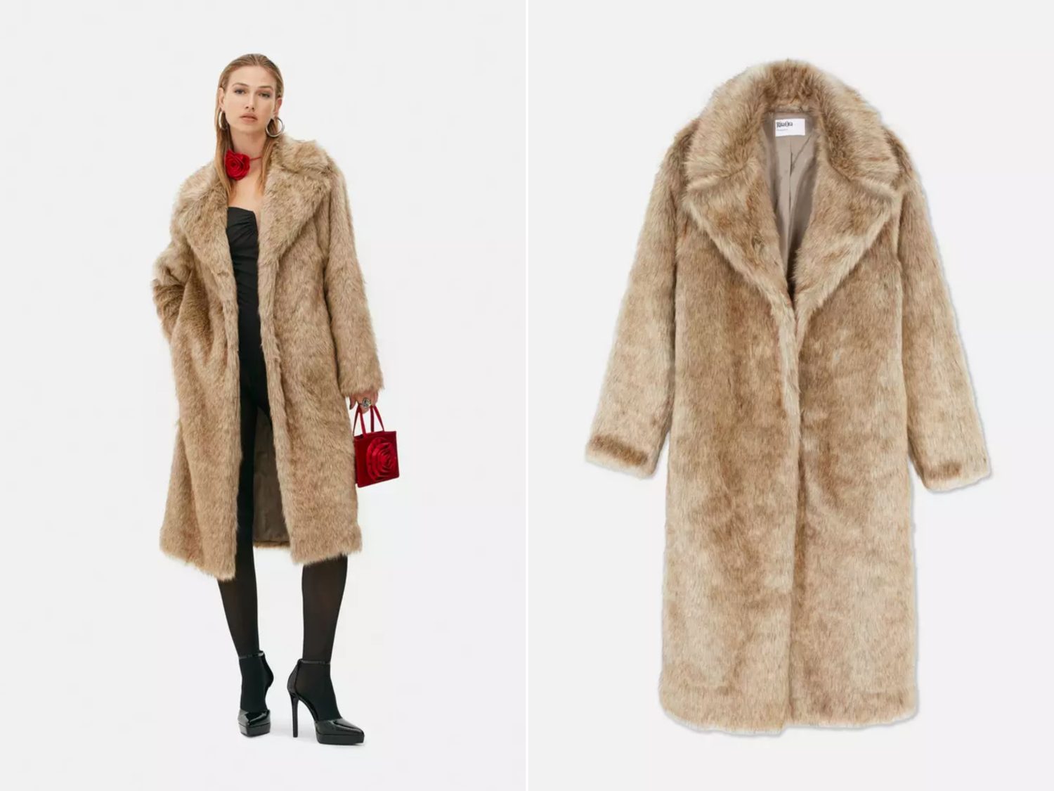 5Abrigo de pelo sintético Midi de Rita Ora: Estilo retro en color arena