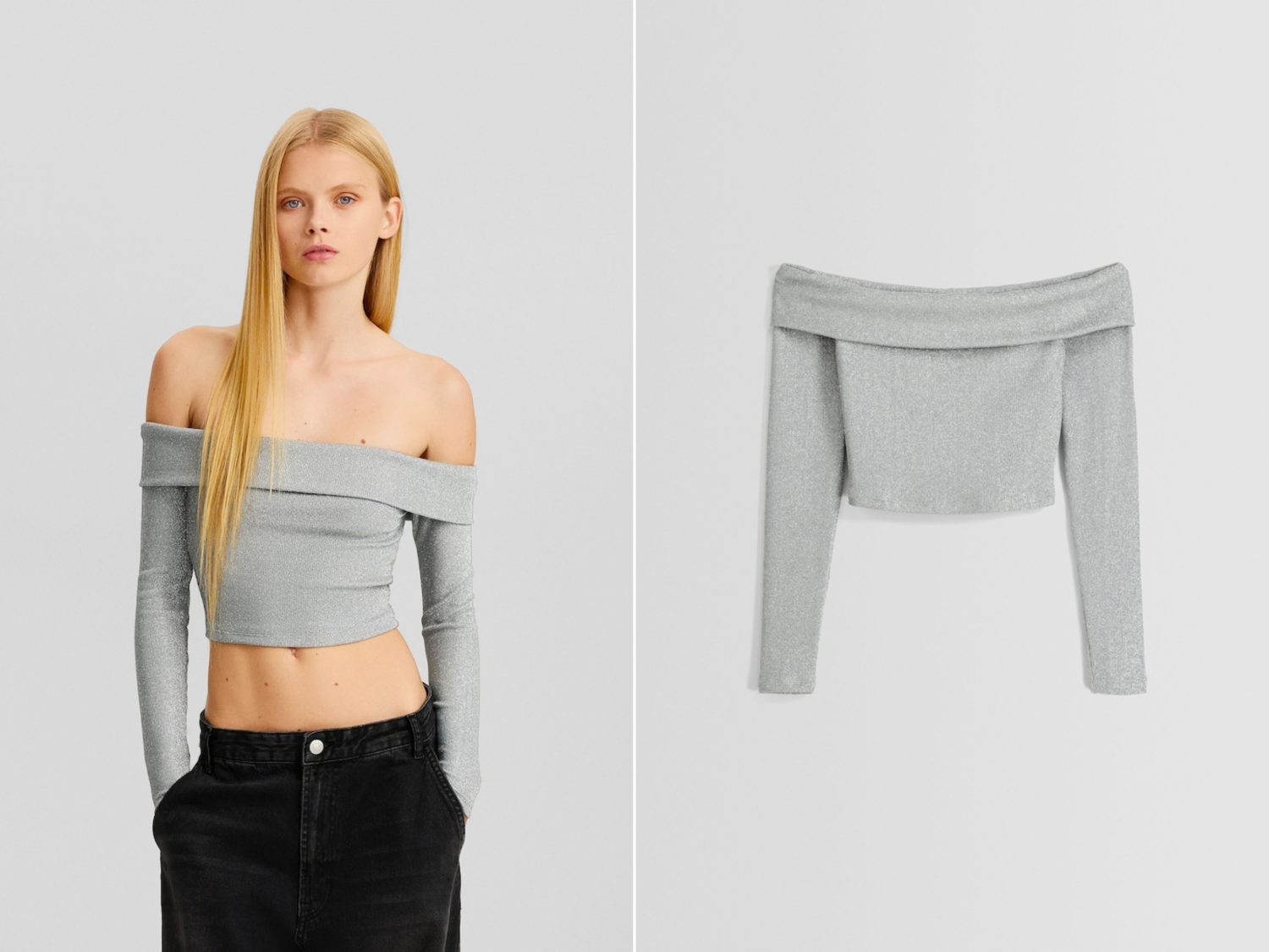 1Brilla con estilo: La camiseta plateada bardot de Bershka, el must-have de la temporada