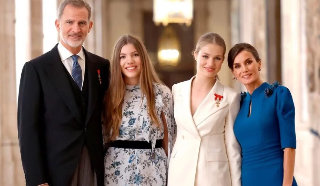 En la imagen elegida aparecen Felipe VI y la reina Letizia a un lado, con sus “pequeñas” en medio. La infanta está al lado de Felipe y la Princesa de Asturias cerca de su madre. La colocación protocolaria no suele ser así, ni en los besamos, en los que el rey va primero seguido de la reina, ni cuando el monarca en medio con su heredera a la derecha. Esto quiere decir que, con esta imagen, la realeza pretende dar una imagen de cercanía y un toque familiar, dejando fuera la parte institucional.