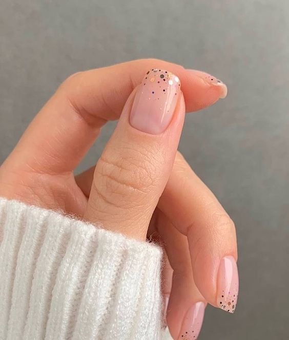 No cabe duda de que la manicura francesa es un clásico que nunca falla. Si buscas ser original, lo mejor que puedes hacer es crear una «falsa manicura francesa» dejando caer motivos de purpurina sobre la punta de tus uñas.