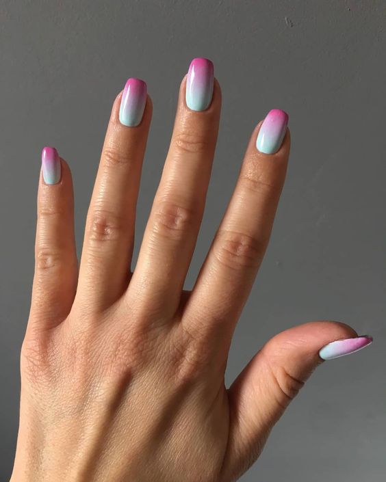 Los tonos potentes también pueden ser los mejores aliados para conseguir unas uñas de infarto. Aquí la clave reside en elegir colores como el rosa y el azul para crear una manicura degradada de aspecto divertido, pero sofisticado.