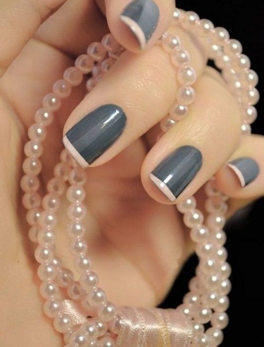 El gris, ese tono neutro que no falla, se convierte en la base de esta manicura tan elegante. Para terminarla, añade en la punta un tono blanco o rosa claro, al estilo de la manicura francesa, para lucir unas uñas decoradas, sencillas y sofisticadas.