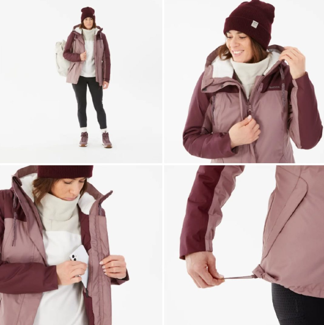 Decathlon permite a las chicas que pasan por allí salir con equipación para comerse el mundo, al mismo tiempo que se ven guapas. Prueba de ello es este modelo con capucha ajustable, bolsillos cálidos y solapa ancha bajo cremallera para un aporte adicional de 3 grados. Sumado a esto, lleva dos bolsillos con forro polar que mantiene las manos calientes. Una chaqueta impermeable y cálida que ha sido diseñada de manera sostenible para practicar senderismo en invierno con temperaturas de hasta –10 grados. Aguanta todo lo que le echan: frío, lluvia, nieve… Ha sido confeccionado con un componente exterior que impide el paso del agua y el viento. Su precio es 44,99 euros.