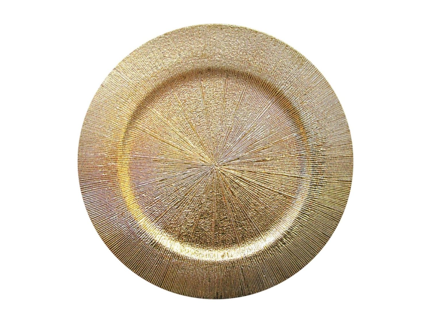 La serie HOME de Alcampo se enriquece con otra variante impresionante: el bajoplato con diseño en relieve. Este modelo, exhibiendo un color dorado radiante, añade una dimensión extra de lujo a tu mesa. Su estructura redonda y los bordes simétricos, adornados con una textura en relieve, no solo capturan la luz de manera espectacular sino que también aportan un aire de sofisticación inigualable.