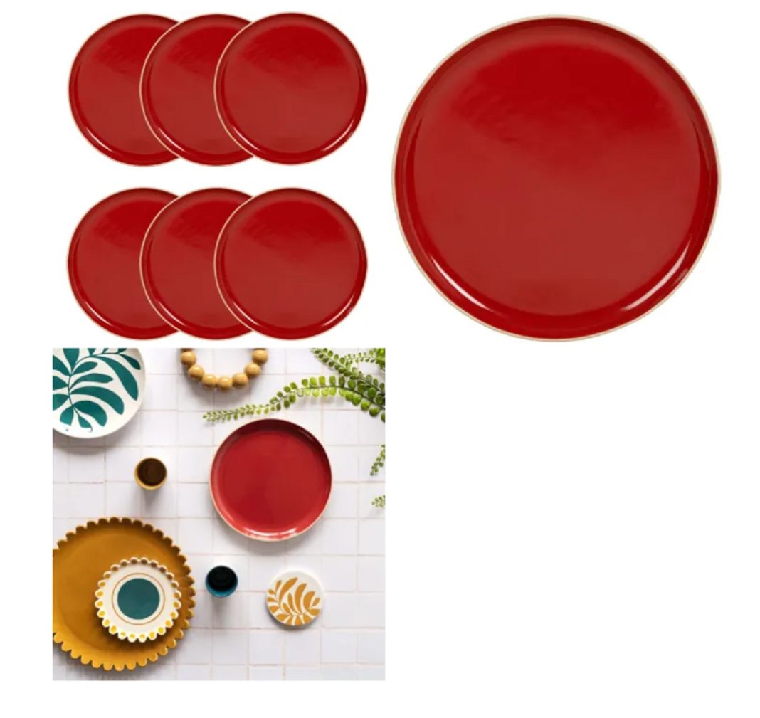 No nos hemos podido resistir al ver el plato plano de gres en color rojo de Maisons du Monde, que se vende en un lote de 6 platos. El rojo siempre es una tonalidad asociada a la Navidad y el que se utiliza más en los looks. Añade un toque de color y alegría a tu mesa navideña con los detalles en blanco que parecen ser los más sofisticados del mundo. Son de gres y en profundidad, una altura y una longitud de 26 cm, y un peso de 0,92 kg de cada. El precio de este maravilloso lote es de 47,94 euros.