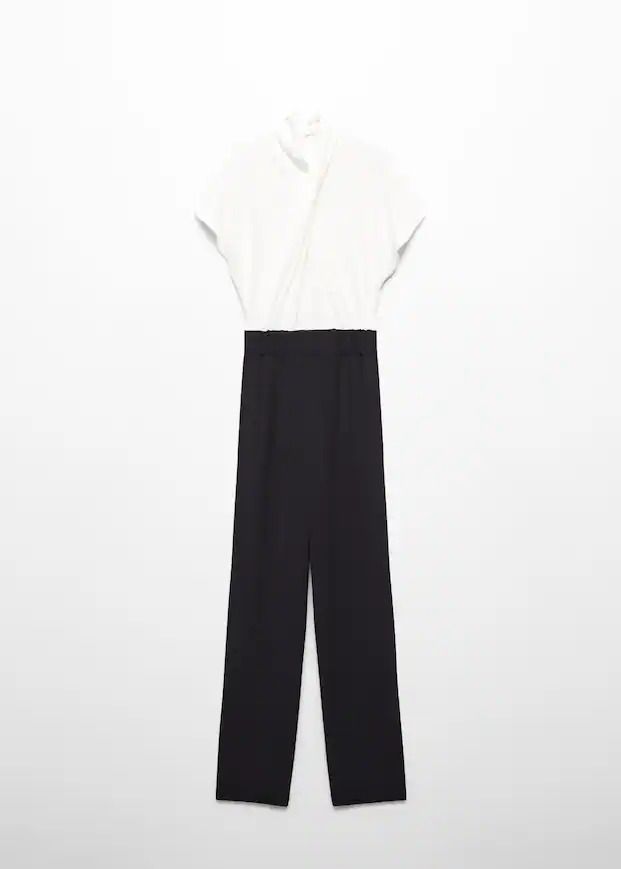 El binomio blanco y negro es una de las combinaciones más elegantes si quieres triunfar con tu look esta Navidad. Este mono, con la parte superior en blanco y de diseño cruzado y pierna recta en negro, estilizará tu figura y captará todas las miradas. Además, te puedes hacer con él en Mango por solo 70 euros.