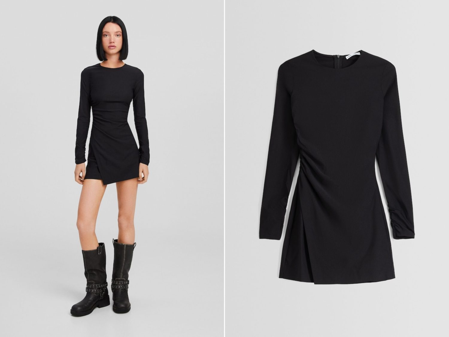 Otro destacado de la colección de Bershka es el mini de manga larga, confeccionado en bengalina, un tejido conocido por su elasticidad y confort. Este diseño combina a la perfección la elegancia de un vestido mini con la sofisticación de las mangas largas, ofreciendo una opción versátil para diversas ocasiones. Su precio, 25,99 €, lo convierte en una alternativa atractiva para quienes buscan agregar un toque de moda a su guardarropa sin sacrificar el presupuesto.