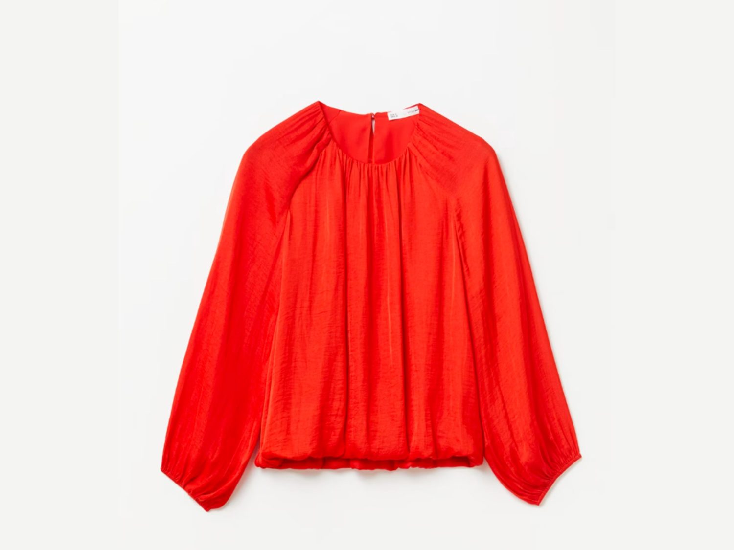 Lo que hace especial a esta prensa de Sfera es su corte fluido, que favorece a todas las figuras, proporcionando un aspecto elegante y cómodo a la vez. Sus mangas abullonadas añaden un toque de volumen a los hombros y brazos, creando una silueta moderna y atractiva. Además, cuenta con un cuello redondo clásico y un delicado escote de lágrima en la espalda, detalles que le aportan un toque de feminidad y distinción. Sin duda, esta blusa se presenta como una opción ideal para quienes desean añadir un toque de tendencia roja a su armario sin comprometer el estilo ni la economía.