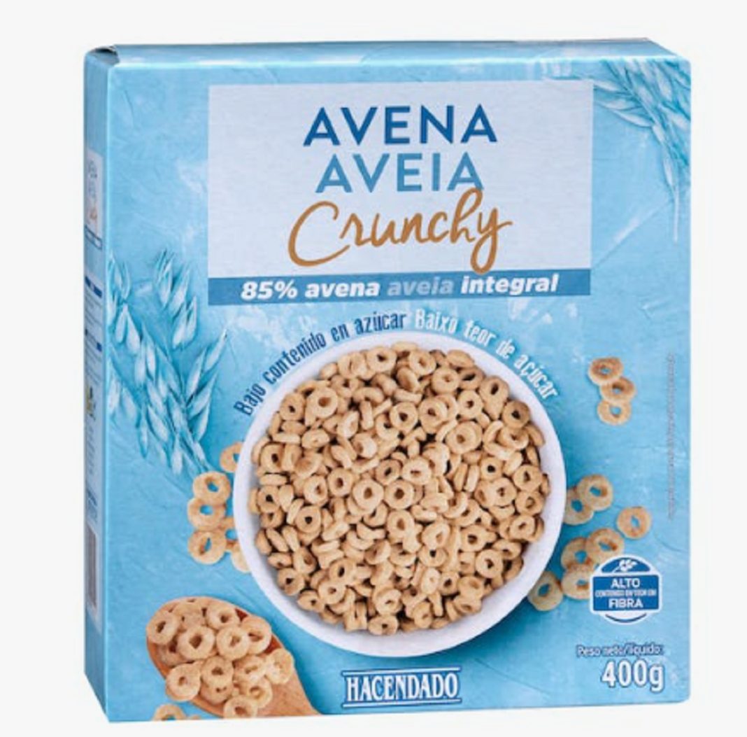 2Cereales avena Crunchy Hacendado 85% avena integral y bajo contenido en azúcar