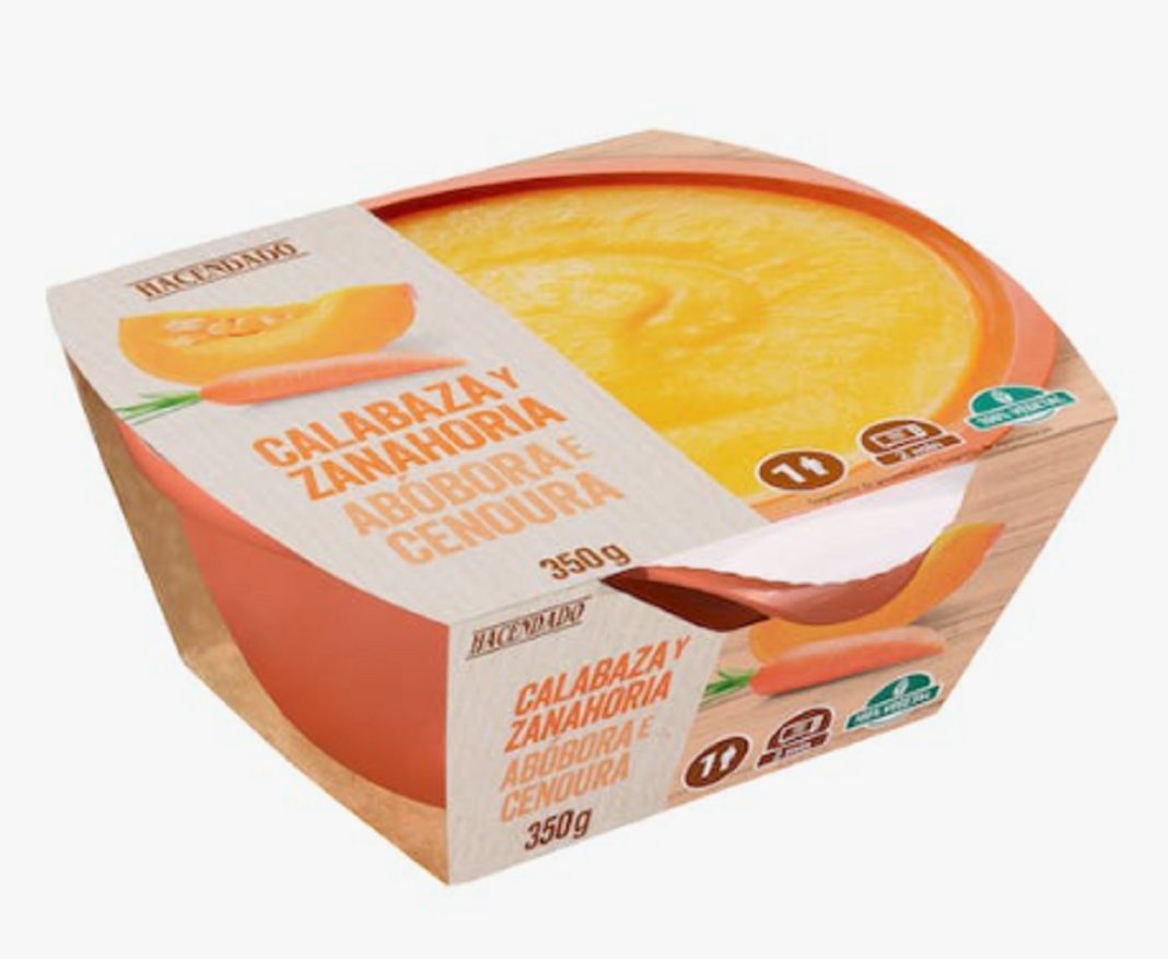 ¿Llegas tarde de trabajar y no tienes gana de cocinar? ¿Hay días en los que no llegas a todo? No te sobreesfuerces ni exijas a tu cuerpo más de lo que puede dar. Haciéndote con esta crema de calabaza y zanahoria tendrás una comida o cena ligera resuelta. Una apuesta saludable que dispone de dos ingredientes principales: la calabaza (en un 24%) y la zanahoria (en un 17%), mientras que el resto de la receta tiene patata, puerro, soja, sal, aceite de oliva y especias. Prepararla es súper fácil, porque solo hace falta abrir el paquete y meterlo en el microondas dos minutos. También puedes echar la crema en una cazuela y calentar. Su precio es 1,60 euros (bol 350 g).