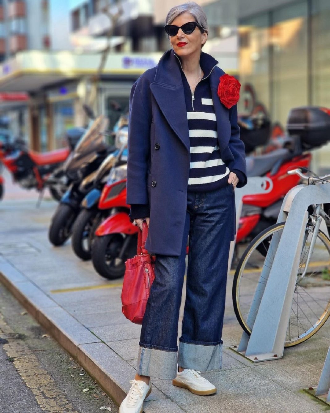 Carmen Gimeno ha arrasado en su perfil de Instagram con este chulísimo jersey de punto y tayas. La mayoría de los que hemos visto el posteo de la creadora de contenido hemos pensado en París, debido al aire chic y distendido con el que llevó las prendas. Remató su look de manera magistral con un vistoso broche floral tamaño XXL en rojo, a juego con su bolso. También son de Zara, aunque de temporadas pasadas. El jersey de punto y rayas presenta un cuello alto, manga larga y una cremallera en la parte frontal que llega aproximadamente hasta la altura del pecho. La marca advierte en su web que la talla que viene suele ser más grande de lo habitual, un dato no menor si vas a pedir el jersey por internet. Su precio es 29,95 euros.