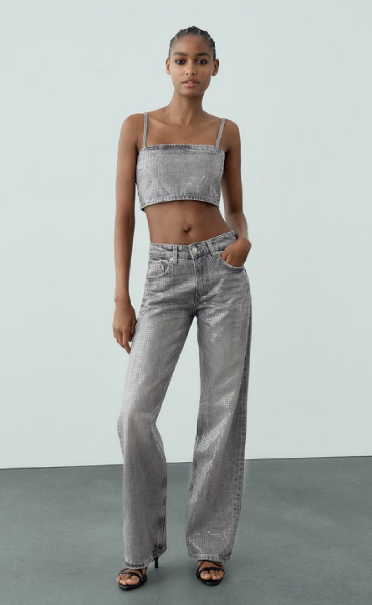 ¿Te apetece subir un poco el nivel, pero sin sacrificar la comodidad? Zara responde tus plegarias con estos jeans con lentejuelas, de tiro medio y con cinco bolsillos. Permite que puedas dar el cante en una fiesta y salir arreglada de casa con lo mínimo e indispensable. Cuentan con un tejido efecto metalizado con aplicación de lentejuelas que encandila a todo el que la ve y un cierre frontal con cremallera y botón metálico. Unos jeans prácticos, chulísimos y súper ponibles con los básicos que tienes guardados en tu fondo de armario. Los jeans siempre han sido la prenda por excelencia, pero estos son un sueño hecho realidad. Su precio es 49,95 euros.