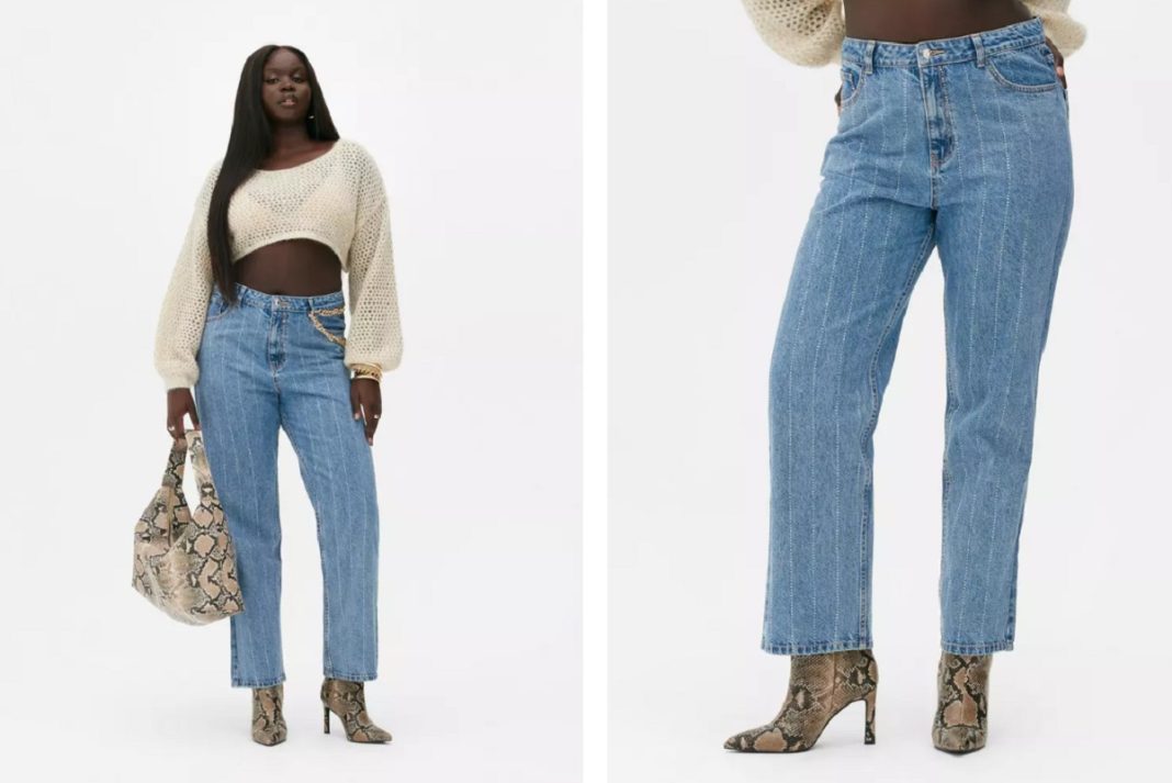Estos exclusivos vaqueros de pernera recta y strass se van a convertir en tus nuevos jeans favoritos. Tienen esa capacidad mágica de resolver esas instancias elegantes en las que no tienes que ponerte. ¿Quién ha dicho que para vernos formales tenemos que llevar trajes o vestidos? Ahora puedes llevarte el mundo por delante con estos vaqueros de raya diplomática. Con una camiseta y un buen blazer tienes un estilismo de oficina total y con una camiseta sencilla el look ideal para salir a dar una vuelta con tus amigas. Su valor es 32 euros.