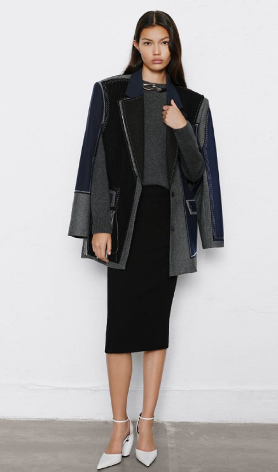 Siguiendo con la misma línea de Yolanda Díaz, pasamos a enseñarte 7 blazer de ZARA que causan sensaciones. Empezamos por esta impresionante creación que nos deja sin palabras. Una blazer confeccionada en hilatura con lana 32%, con cuello solapa de muesca y manga larga acabada en abertura y botones. Asimismo, lleva un detalle de aberturas frontales para hacer una blazer tipo capa. Un modelo top que recoge la esencia de la sastrería masculina y el buen hacer un taller del siglo XX. Quedan a la vista los fundamentos de la costura y el diseño de las americanas que estaban de moda hace décadas y hoy vuelven con más fuerza que nunca. Dispone de bolsillos con solapa en delantero y de vivo en pecho. Combina recortes con lana en espiga, franela, raya diplomática en colores gris y marino, con elementos como hilvanes blancos. Su precio es 299 euros.