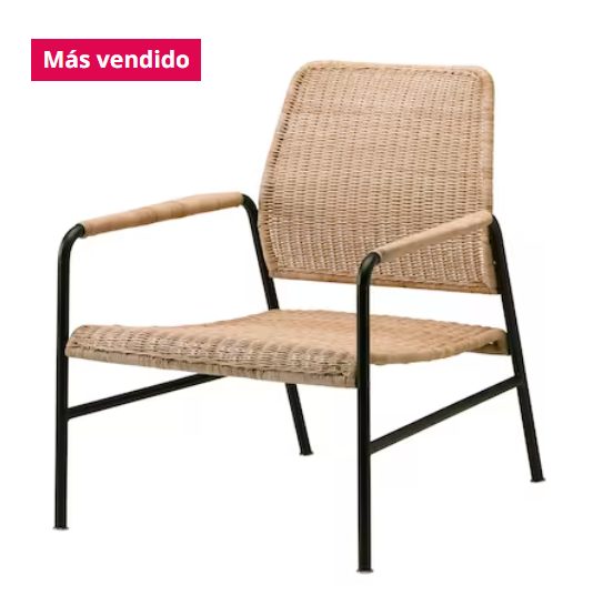 Otro de los materiales que no pueden faltar en tu hogar, sobre todo si deseas aportarle un toque rústico y cálido, es el ratán. Por esta razón, uno de los sillones que no querrás dejar pasar para convertirlo en la pieza clave de tu salón es este. Elaborado en ratán de tono neutro, fácil de encajar con cualquier otro color en tu decoración, destaca por el toque industrial que le dan sus patas en metal negro, creando un contraste infalible. Si hablamos de su precio, lo puedes conseguir por solo 149 euros. No encontrarás otro igual.