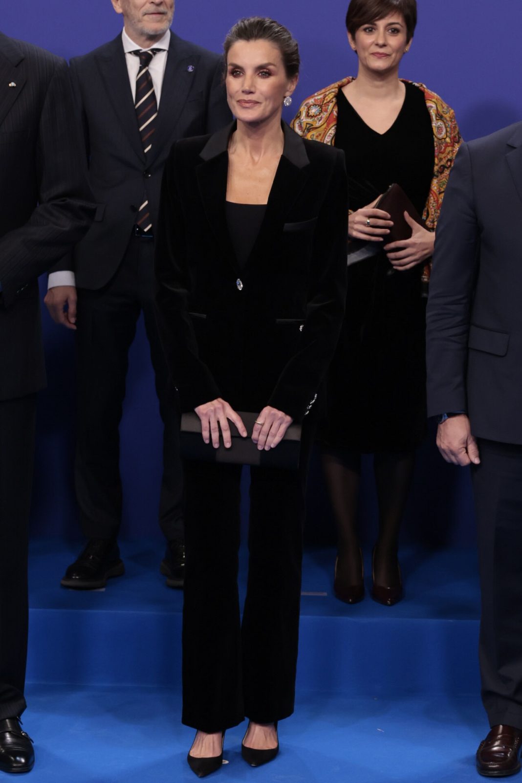 En su última salida pública, la antigua comunicadora fue portada en varios medios de comunicación con un esmoquin negro de Paco Rabanne, de terciopelo y con botones joya. La monarca acudió junto al rey Felipe VI al concierto en el Auditorio de la capital en el que se da por clausurada la presidencia española del Consejo de la Unión Europea. Para esta solemne ocasión, Letizia escogió el mejor look del año: un esmoquin de terciopelo negro. El diseño tiene solapas de raso y botones joya en los puños, frente y bolsillos.