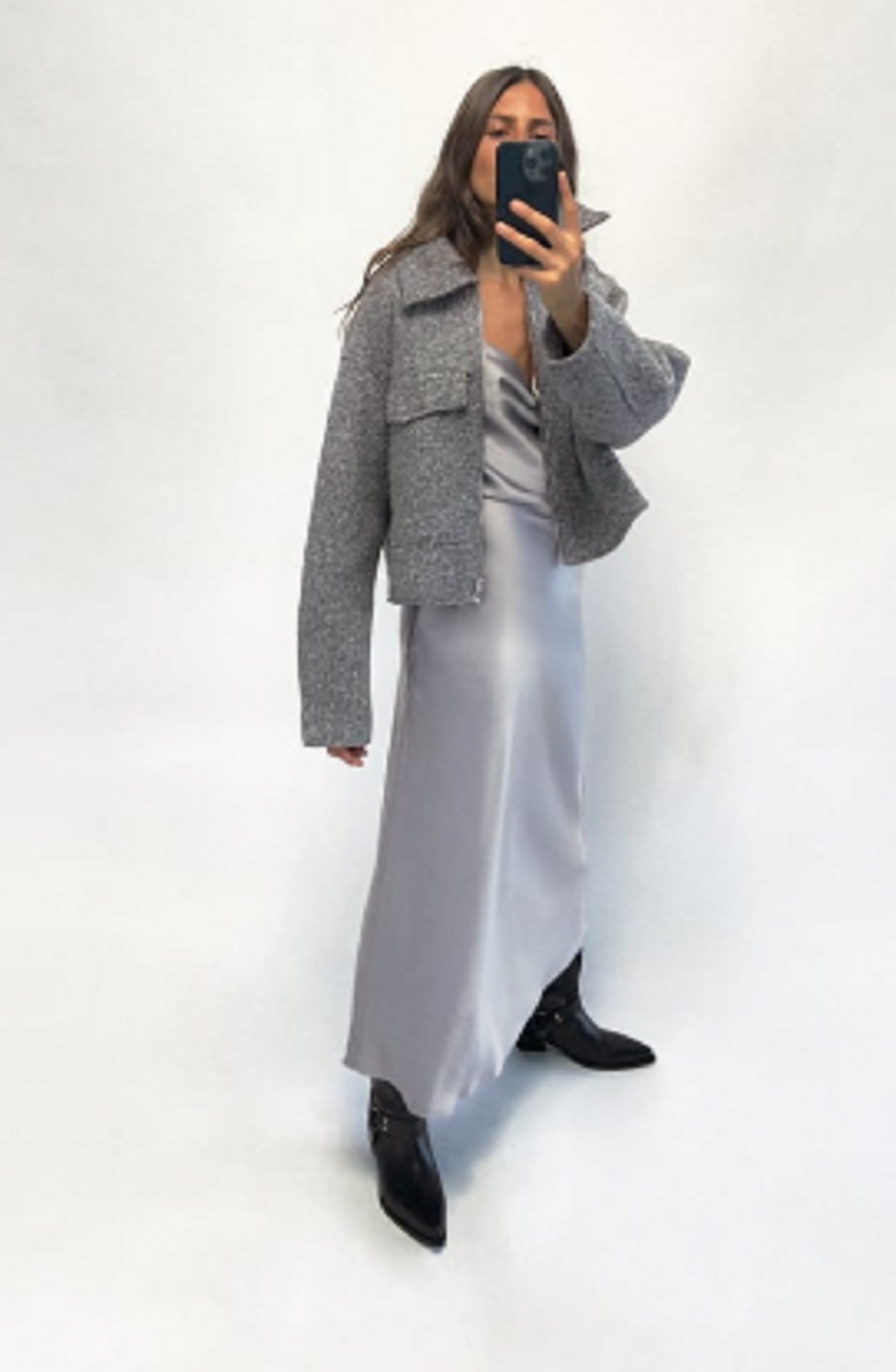 Zara sigue enamorándonos con esta cazadora de cuello solapa y manga larga, bolsillos delanteros de plastrón con solapa y cierre frontal con cremallera metálica. Un look que nunca falla con este tipo de cazadoras es llevarlas con vaqueros rotos. No obstante, la opción que propone la modelo de la imagen también tiene su público. Se torna como el comodín perfecto para llevar la próxima Nochevieja o incluso en otras instancias en las que necesitamos una chaqueta al salir de un evento formal, pero distendido. El precio de este modelo es 35,95 euros.