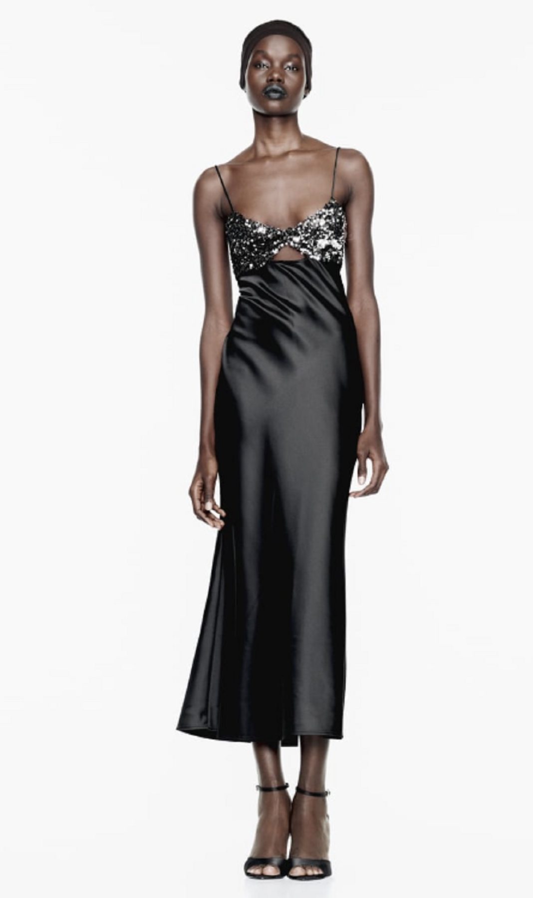 Este vestido lencero causa sensación con su exclusivo combinado de lentejuelas. Es un modelo de escote pico con frunces y abertura, tirantes finos, detalle aplicación de lentejuelas con tejido combinado satinado y cierre lateral con cremallera oculta en costura. Otra pieza que puedes utilizar sin limitaciones, dado que no pasará de moda el año que viene, ya que los brilli brilli quedan estupendamente en cualquier evento importante que sea de noche. Incluso puedes reutilizarlo para la fiesta de Año Nuevo del año que viene si no vas a coincidir con las mismas personas. Con semejante presentación, hay quien podría pensar que es una especie carísima, pero está disponible por 35,95 euros.
