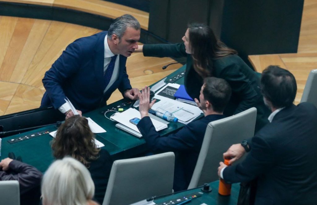 La reprobación se debe a la actitud amenazante y desafiante hacia el portavoz adjunto de Más Madrid, Eduardo Fernández Rubiño. Según las imágenes, Ortega Smith sostenía una carpeta que aireaba agitadamente, con tal fortuna que dio a parar a una botella de agua vacía y esta impactó directamente en el rostro del diputado.