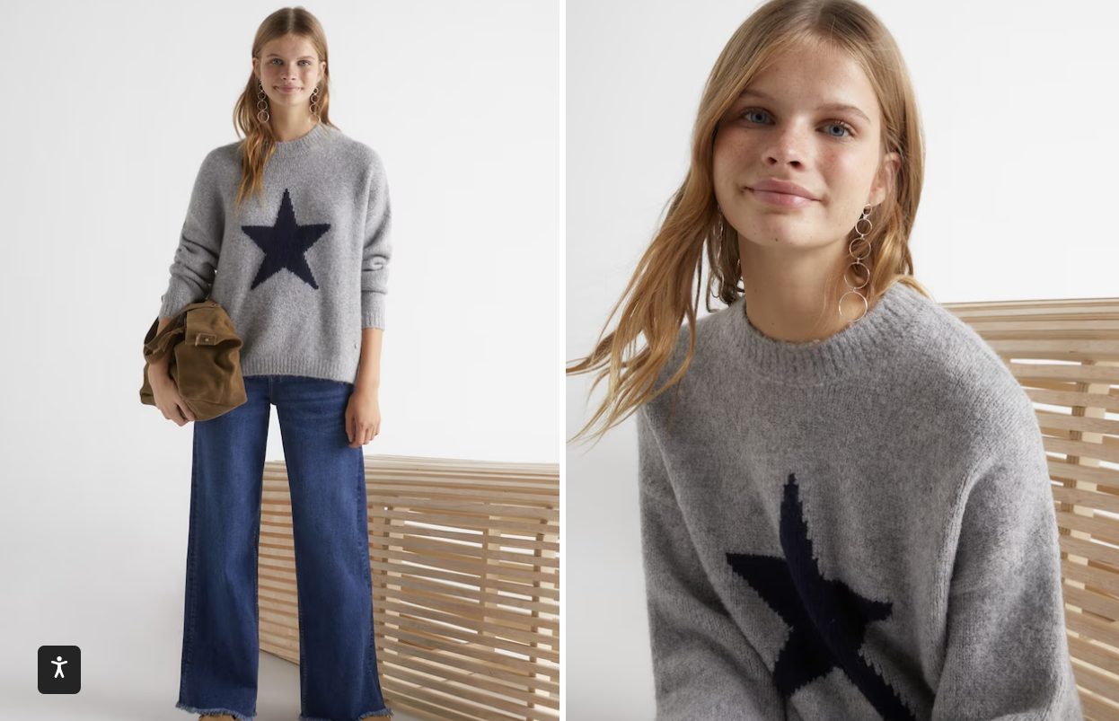 Los motivos especiales siempre logran llamar la atención. En este caso, uno de los jerséis que más destacan dentro de las novedades de El Corte Inglés es este de la marca Green Coast. Disponible en color gris y con un bonito estampado de estrella en el centro, que crea un atractivo contraste, podrás combinarlo con todo por tan solo 39,99 euros. Sin duda, será una de tus mejores inversiones para el invierno.