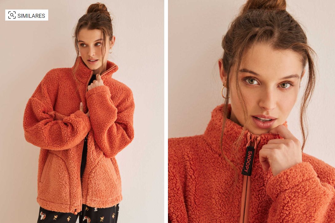 En el caso de que busques una prenda perfecta para mantenerte calentita en el hogar, también puedes echar un vistazo por la sección de invierno de Women’Secret. En su interior, encontrarás opciones como esta chaqueta corta de borreguito, de Snoopy, disponible en un llamativo tono teja muy característico. Cálida y funcional, ahora la puedes conseguir en la tienda por tan solo 28,99 euros cuando su precio anterior era de 36,99. Un descuento que merecerá la pena.