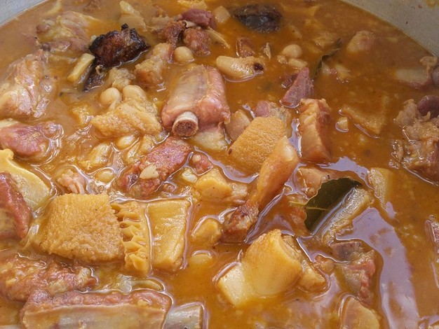 - Agrega los callos, el morro y la pata a la cazuela y cocina durante unos minutos hasta que se doren.