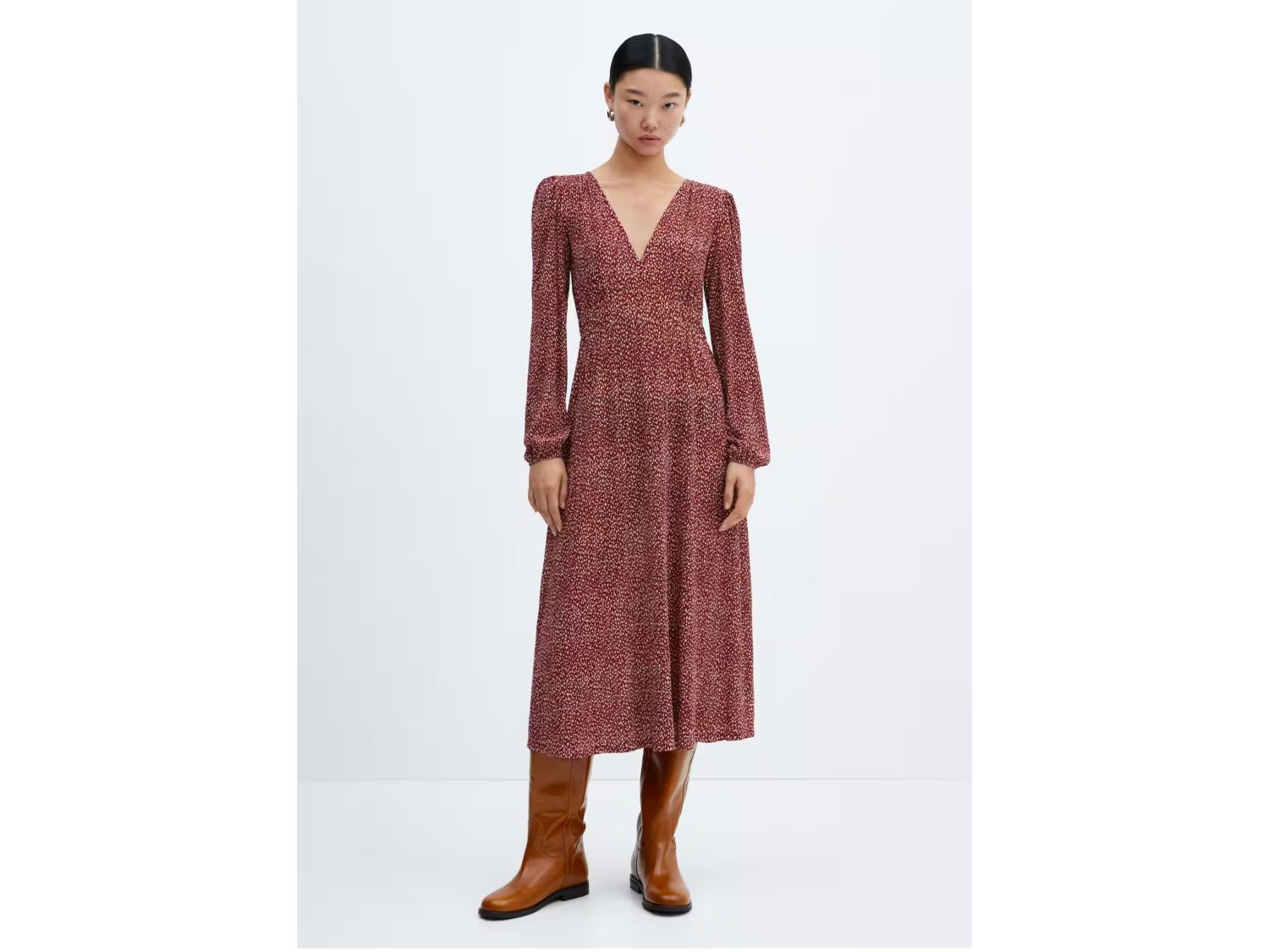 La temporada de rebajas en Mango nos trae joyas como este vestido boho, un diseño todoterreno en tonos granates que captura la esencia de la comodidad y el estilo. Este modelo largo, con manga larga, es ideal para los meses de otoño e invierno, y se convierte en la pareja perfecta de unas botas altas a juego. Disponible en una variedad de colores y estampados, ofrece opciones para adaptarse a diferentes gustos y preferencias.